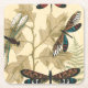 Colourful Dragonflies Floating Above Leaves Square Paper Coaster