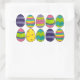 Stickers feature an assortment of colourful painted Easter eggs in pink, yellow, purple, green, and blue. Created from a series of original marker illustrations.