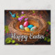 This vibrant Easter postcard features several decorative and colourful eggs in a basket.
