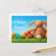 Colourful Easter Eggs and Rabbit on Green Grass Holiday Postcard