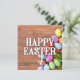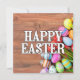 This vibrant card features various colourful Easter eggs and a few freshly picked tulip flowers.