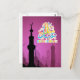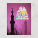 A postcard for Eid festive featuring colourful Eid Mubarak calligraphy in both Arabic and English