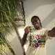 There are five main colours represented: red and dark red, yellow to gold, sky blue, green, and sometimes pink. The colours give an intensified symbolic meaning to the Ndebele. They can mean the status or power of the home's owners, offer prayer or announce a marriage in the home. Corresponding t-shirt can be found here --> https://www.zazzle.com/colorful_ethnic_african_tribal_geometric_fashion_t_shirt-256397037383530916