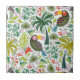Colourful exotic birds and flowers pattern.White background with strong colour birds and flowers. Chevron pattern accents.