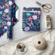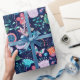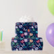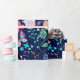 Colourful exotic flowers with a sparkling texture in a seamless pattern over dark blue background.