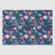 Colourful exotic sparkling texture flowers in a seamless pattern over dark blue background. There is matching wrapping paper and a ribbon.