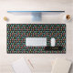Stylish modern desk mat features faceted gemstones on black background and customisable text band to personalise with name or monogram