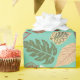 Colourful autumn colours leaves seamless pattern. Changeable turquoise-blue background.