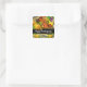 A colourful Thanksgiving day Greeting sticker, with grapes, pumpkins and lovely fall leaves.