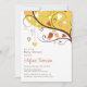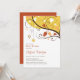 Adorable whimsical illustrations of orange and brown mummy bird and baby bird perched on a heart filled tree with dangling heartstrings. Very cute and fun perfect for outdoor baby showers.