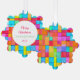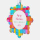 Abstract Art Watercolor Pattern in pink, yellow, green, blue, orange, white trim with custom MERRY CHRISTMAS in red, FAMILY NAME in green, YEAR in red. Easy to personalise text, text colour, font. Great Holiday greetings for ANY family, person, pet, baby announcement, at home or office. Modern, Colourful, Festive. Mix and match entire Abstract Art Collection by TMCdesigns.