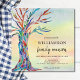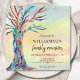 It features a mosaic family tree in rainbow colours on a watercolor background.