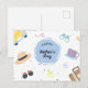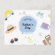 This Father's Day Holiday Postcard offers a colourful and cheerful design that celebrates the diverse interests and hobbies of dads everywhere. The front of the card is adorned with playful illustrations that include a classic car, a stylish fedora, a pair of sunglasses, a cosy teacup, and a travel suitcase, all set against a backdrop of confetti and streamers. The central focus is a blue circle with "Happy Father's Day" elegantly scripted inside. This design captures the essence of Father's Day — a celebration of all the things that make dads special and loved. To add a personal touch, the back of the card is customisable, allowing you to write a heartfelt, personalizable message that will make your dad feel truly celebrated on his special day.
