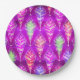 Colourful Feathers Abstract Pattern In Purple Pink Paper Plate