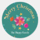 Colourful Festive Floral Green Pink Christmas Name Classic Round Sticker