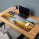 Desk mat featuring a colourful painting of a spacious summer landscape with a creek and wildflowers.