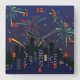 Colourful Fireworks Over the City Skyline Sketch Square Wall Clock