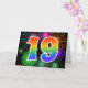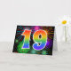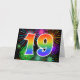 The front of this exciting, fun, and vibrant greeting card design features a colourful pattern inspired by celebratory fireworks, along with the number "19" featuring a multicolored rainbow like gradient pattern, on a black coloured background. The inside features a customised greeting message, or could perhaps be cleared and left blank if a message is to be written by hand instead. A greeting card like this might be a fun way to celebrate somebody’s nineteenth birthday, or perhaps a couple’s nineteenth wedding anniversary, or some other 19th event. [~Z0000342]