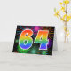 The front of this exciting, fun, and vibrant greeting card design features a colourful pattern inspired by celebratory fireworks, along with the number "64" having a multicolored rainbow like gradient pattern, on a black coloured background. The inside features a personalised greeting message, or could perhaps be cleared and left blank if a message is to be written by hand instead. A greeting card like this might be a fun way to celebrate somebody’s sixty fourth birthday, or perhaps a couple’s sixty fourth wedding anniversary, or some other 64th event. [~Z0000342]