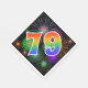 This exciting, fun, and vibrant paper napkin design features a colourful pattern inspired by celebratory fireworks, along with the number "79" having a multicolored rainbow like gradient pattern, on a black coloured background. Paper napkins like these might be fun to use at a celebration being held to commemorate somebody’s seventy ninth birthday, or perhaps a couple’s seventy ninth wedding anniversary, or some other 79th event. [~Z0000340]