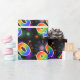 This exciting, fun, and vibrant wrapping paper design features a colourful pattern inspired by celebratory fireworks, along with the number "90" having a multicolored rainbow inspired gradient pattern, on a black coloured background. Wrapping paper like this might be a fun, happy way of wrapping gifts or presents being given for somebody’s ninetieth birthday, or perhaps for a couple’s ninetieth wedding anniversary, or some other 90th event. [~Z0000341]