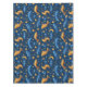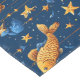 Various stylised fish in shades of blue and orange, surrounded by stars and a crescent moon against a dark blue background.