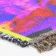 A quality printed throw has its advantages. This is a much finer weave throw than its loopier cousins, and though lighter, it is worth the investment for custom room accessorizing. The back is much prettier than the typical brown, and the fringe on the long sides very vivid, the selvage nicely done. Before photographing, I washed the throw in cold water, delicate, with a thicker woven throw the same size. On tumble dry low, this throw was dry in half the time as the other. This is a very practical quality if you use throws for furniture covers or to wrap up in frequently. The sleekness of the fabric makes it a great layer for accenting or protecting without the feeling of sitting on too much stuff. Perfect for napping or when you feel a light chill coming on. The color printing is beautiful and on this fabric, matched the design and color of my Photoshop image. This is an advantage for blending room fabrics and colors. The fringe on the short sides prints the colors from the design image and therefore varies from the side fringe. I streaked a white fractal line through the plaid pattern to give the illusion of weaving. This printed as crisp as an illusory thread, and put some white in the short side fringe, showing another advantage of print vs loomed- for artistic purposes, line lines, detail, and color integrity can be planned and preserved. My loomed throws have color limitations and more of a needlepoint texture. Print throws reproduce an exact image. The throw felt a little stiff straight out of the package, but this went away in the first delicate wash. Of course I searched the wash water for ink or bleeding and there was none.
