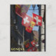 This photo shows the colourful national flag of Switzerland and the colourful flag of the canton of Geneva flying above a street in the old part of the city of Geneva on a sunny summer day.