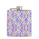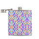 Colourful flask with intricate floral and geometric patterns in purple, blue, green, and orange. Front and side views highlight the vibrant design.