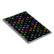 Colourful fleur de lis pattern on black notebook