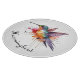 Add a dazzling fusion of art and utility to your kitchen with our Custom Glass Cutting Board, featuring the captivating "Colourful Flight, Watercolor Hummingbird" design. This stunning board showcases a vibrant watercolor hummingbird in dynamic flight, a kaleidoscope of iridescent blues, greens, oranges, and purples bursting from an artistic paint splatter background. The design is printed on the underside, allowing the hygienic glass surface to protect the artwork while providing a smooth, non-porous area for food preparation.