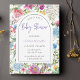 Floral Arch Frame Baby Shower Invitation with pretty wild country flowers in purple, lavender, green leaves and more, with a brushed script typography on an elegant editable background suit for Baby girls' shower.