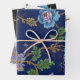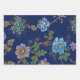 Colourful Floral-Black, White & Blue Background Wrapping Paper Sheet
