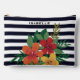 Colourful Floral Black White Striped Personalised Accessory Pouch