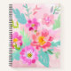 This design features a feminine and beautiful colourful bouquet of assorted flowers in shades of pink, orange, yellow and white. They are complemented with green and aqua leaves on a soft pink background.