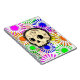 Floral burst pattern and watercolor skull with halftone effects applied to image.
