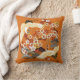 Cranes and Sakura in a Colourful Vintage Pattern - Japanese Bird and Floral Folk Fashion on an Orange Background.