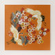Cranes and Sakura in a Colourful Vintage Pattern - Japanese Bird and Floral Folk Fashion on an Orange Background.