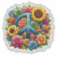 A vibrant arrangement of flowers surrounds a large, stylised peace symbol. Sunflowers, roses, and other blossoms create a cheerful ambiance, blending various colours that evoke a sense of harmony and tranquillity in a playful and artistic way.