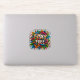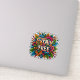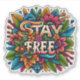 A vibrant explosion of colours showcases beautiful flowers and leaves surrounding the uplifting phrase urging everyone to stay free.