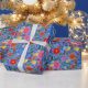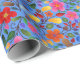 This is a gorgeous design featuring flowing vines filled with flowers, foliage, and berries from each of the four seasons. This bohemian style botanical print has bright pink, yellow, blue, and red flowers intertwined with leaves like oak and pine on fanciful vines. The pattern is set against a vibrant blue background. This pattern is perfect for any occasion and appropriate for kids and adults alike.