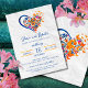 Colourful Floral Heart & Butterflies Mexican Wedding Invitation.