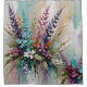 Beautiful Colourful Floral and leafy arrangement on distressed textured beachy colour background of light blue, beige, Lavender and white lines