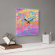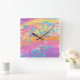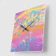 Colourful floral painting square wall clock