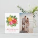 Floral photo Mele Kalikimaka holiday card featuring brightly coloured flowers and tropical leaves on the front and a botanical frame at the back. Easily personalise this beautiful holiday card with your photo and text.