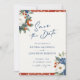 Colourful Floral QR Code Wedding Save the Date... Floral bouquets in watercolor shades of navy blue, rust red, and creamy white border your custom text on a cheerful wedding Save the Date design created to elicit a happy, positive feeling as you prepare for your special day. The back of the card contains your wedding website information and an example QR code graphic you can replace by simply entering your own wedding website URL on the template. All example text on both sides of the card (aside from the calligraphy elements) can be easily revised with your own details on the same personalisation template.