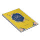 This stylish, colourful notebook features a bright, golden yellow background with a faux rose gold geometric frame and rich dark blue centre. Trendy hand painted flowers in shades of blush pink and navy blue, along with watercolor green leaves, decorate the design. Handwritten script says "Notes" in a soft blush pink shade, and you can add your own specific notebook subject to the text below, along with your name.