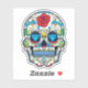 Colourful floral sugar skull no.6 illustration. Blue diamond eyes.