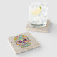 Colourful Floral Sugar Skull Purple Hearts Stone Coaster