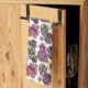 This Día de los Muertos kitchen towel features a hand-drawn floral sugar skull pattern showcasing intricate black pen illustrations of calaveras adorned with flowers and roses.